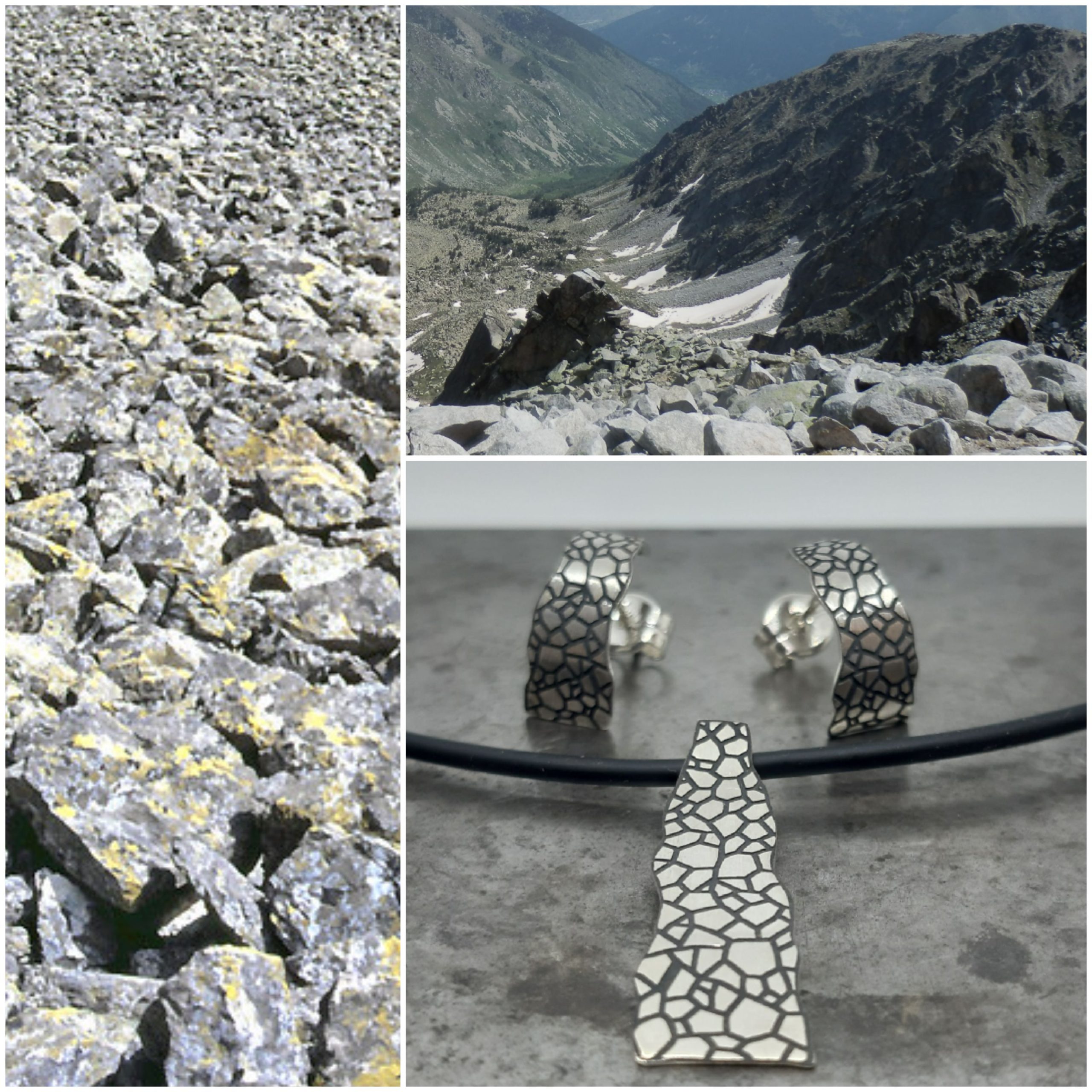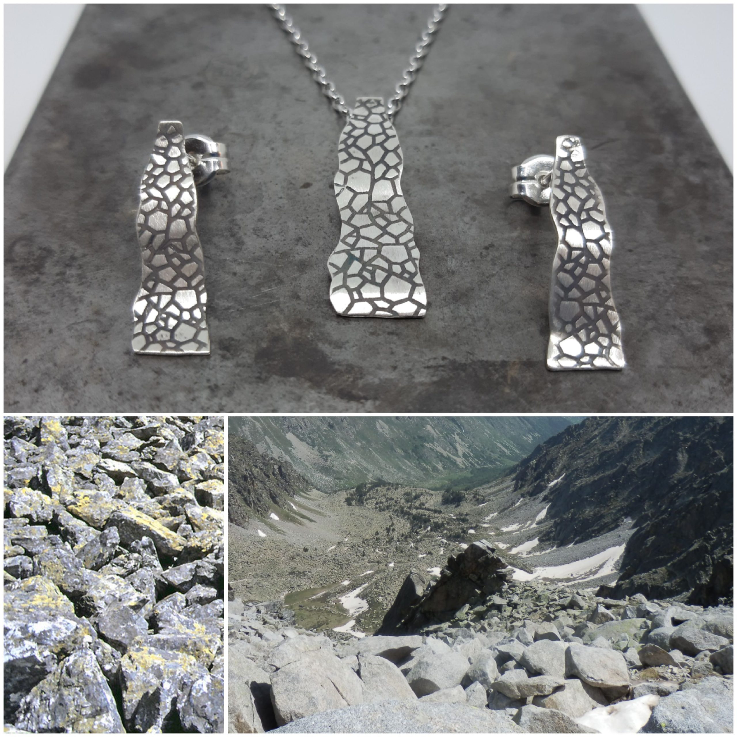 Joies artesanes que porten impregnada l’empremta de la roca de la muntanya per contacte directe amb el metall i la roca. Volen captar el simbolisme, identitat, espiritualitat i màgia de la muntanya. Moltes estan inspirades en les seves formes, elements o tons naturals.
