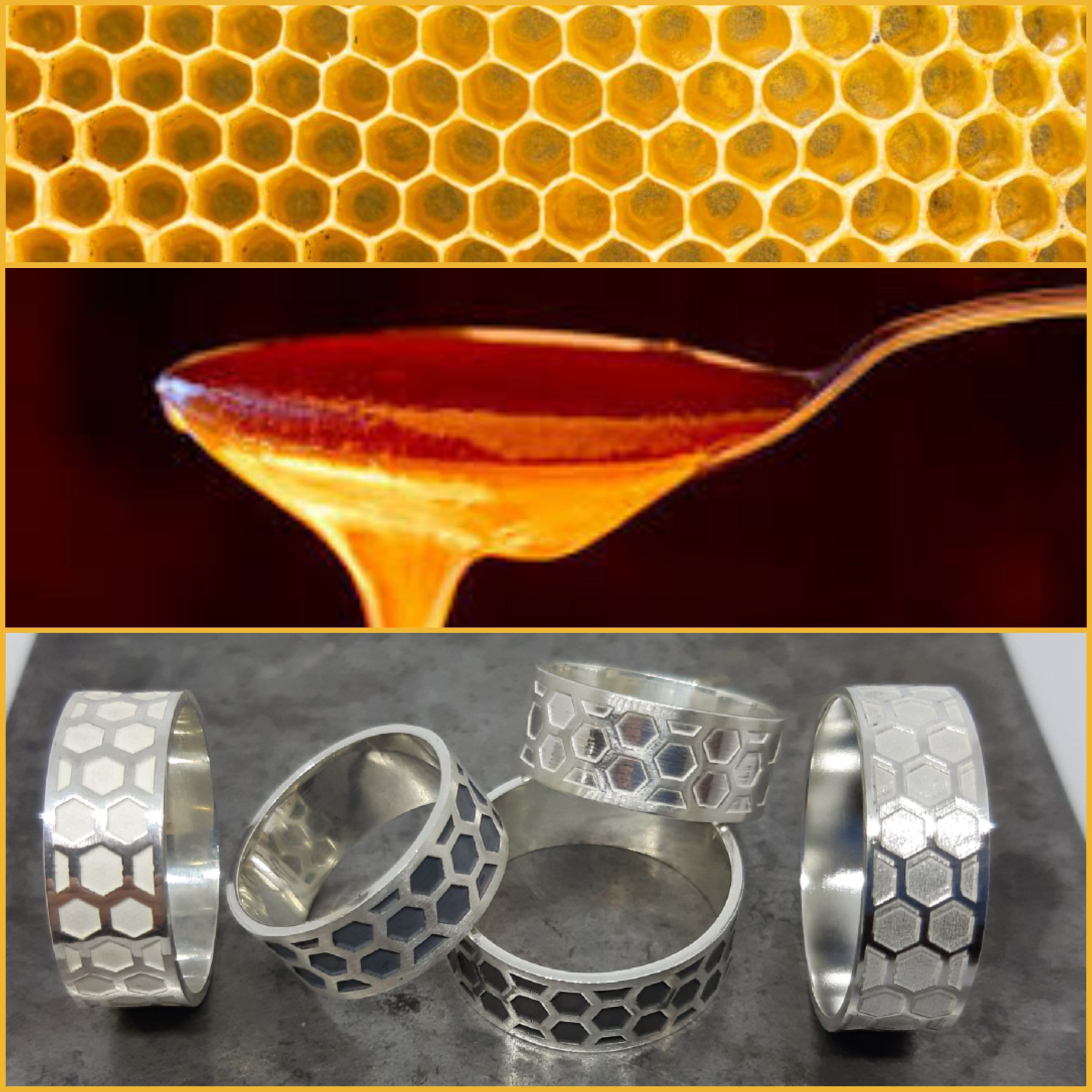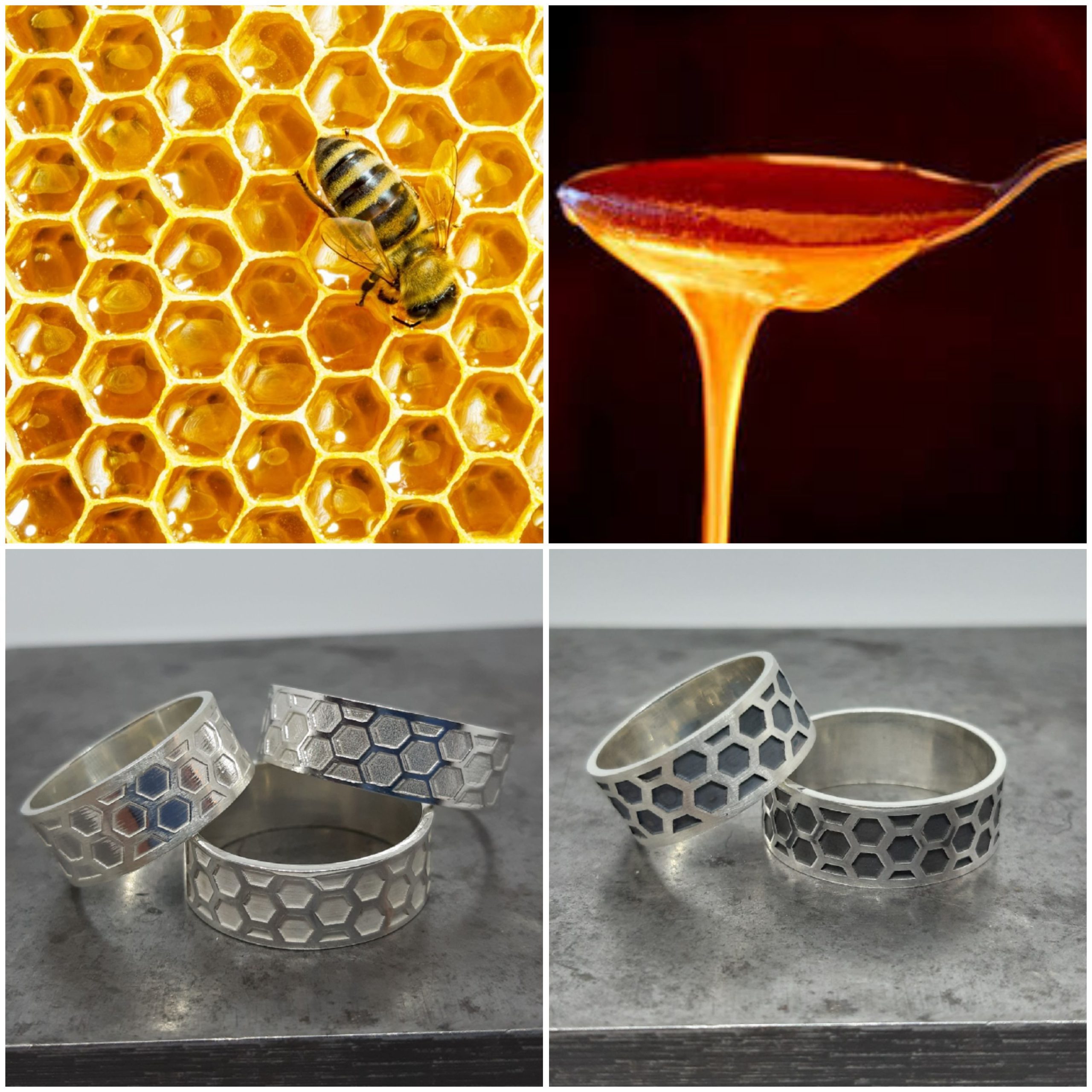 Joies que simulen l’estructura que construeixen les abelles per acumular mel i pol·len. Pensades per apicultors, aficionats o amants de la natura.