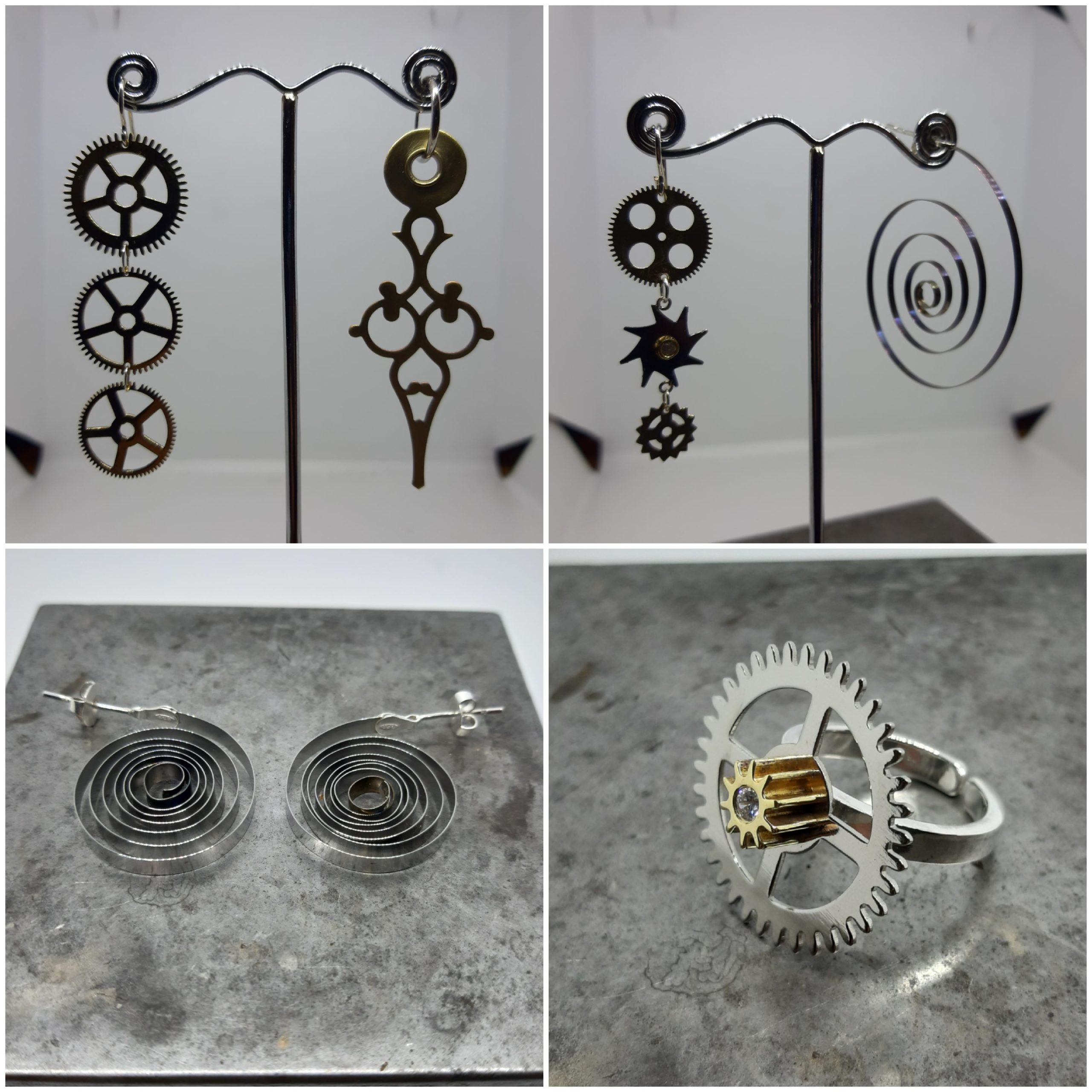 El temps roda, i aquestes joies volen que rodem amb ell. Peces creades amb components de rellotge triats i muntats al nostre taller. Dissenys propis, únics o de poques unitats.