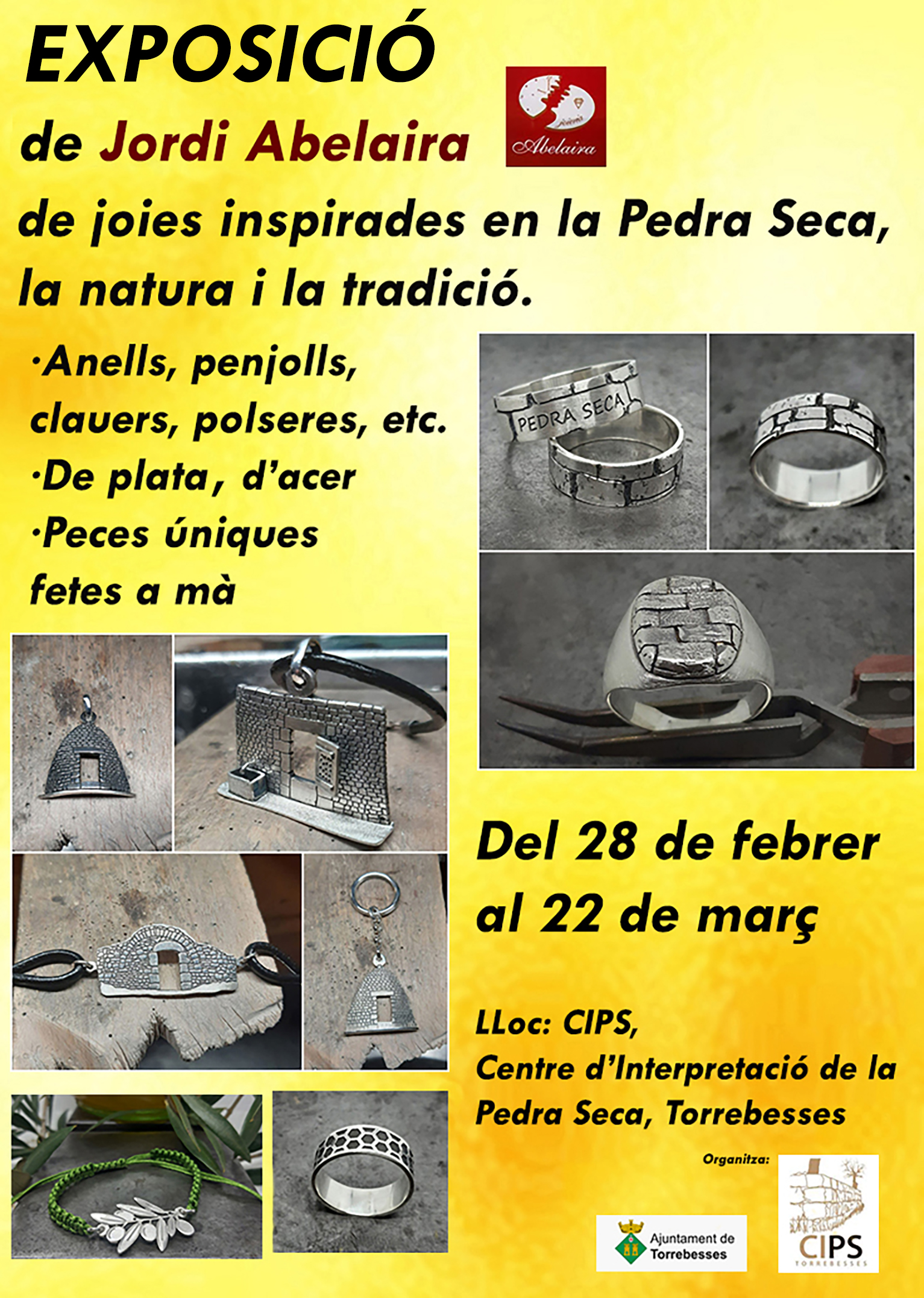 Del 28 de febrer al 22 de març, la joieria Abelaira – Rellotgeria i Joieria presenta l’exposició de Jordi Abelaira al CIPS – Centre d’Interpretació de la Pedra Seca de Torrebesses. Una mostra única de joies artesanals inspirades en la pedra seca, la natura i la tradició del nostre territori.